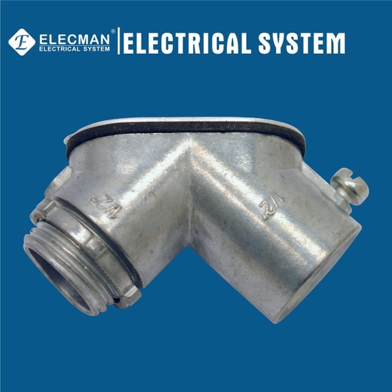 ELECMAN fournit un tuyau EMT moulé sous pression en zinc pleine grandeur à un coude de traction à 90 degrés homologué UL de 1/2" à 1-1/4".